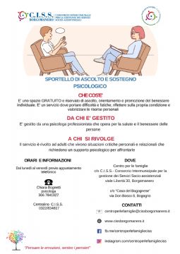 E' un servizio GRATUITO di consulenza psico-educativa e pedagogica. Si offrono uno spazio