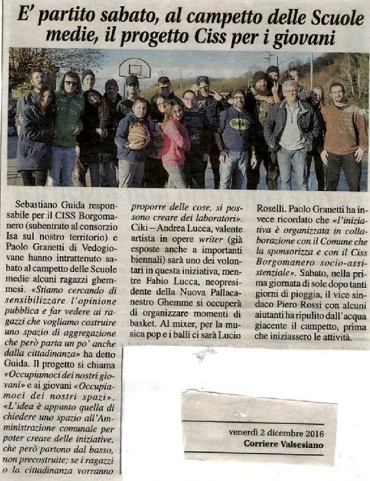 Il Consorzio ringrazia il Comune di Ghemme, la Nuova Pallacanestro Ghemme e tutti coloro i quali hanno collaborato e partecipato all'iniziativa “Occupiamoci dei nostri giovani – Occupiamoci dei nostri spazi”, che si è tenuta a Ghemme il 26.11 u.s., con lo scopo di sensibilizzare l'opinione pubblica del territorio, e per far sì che la popolazione diventi attiva nella progettazione del benessere dei propri giovani.