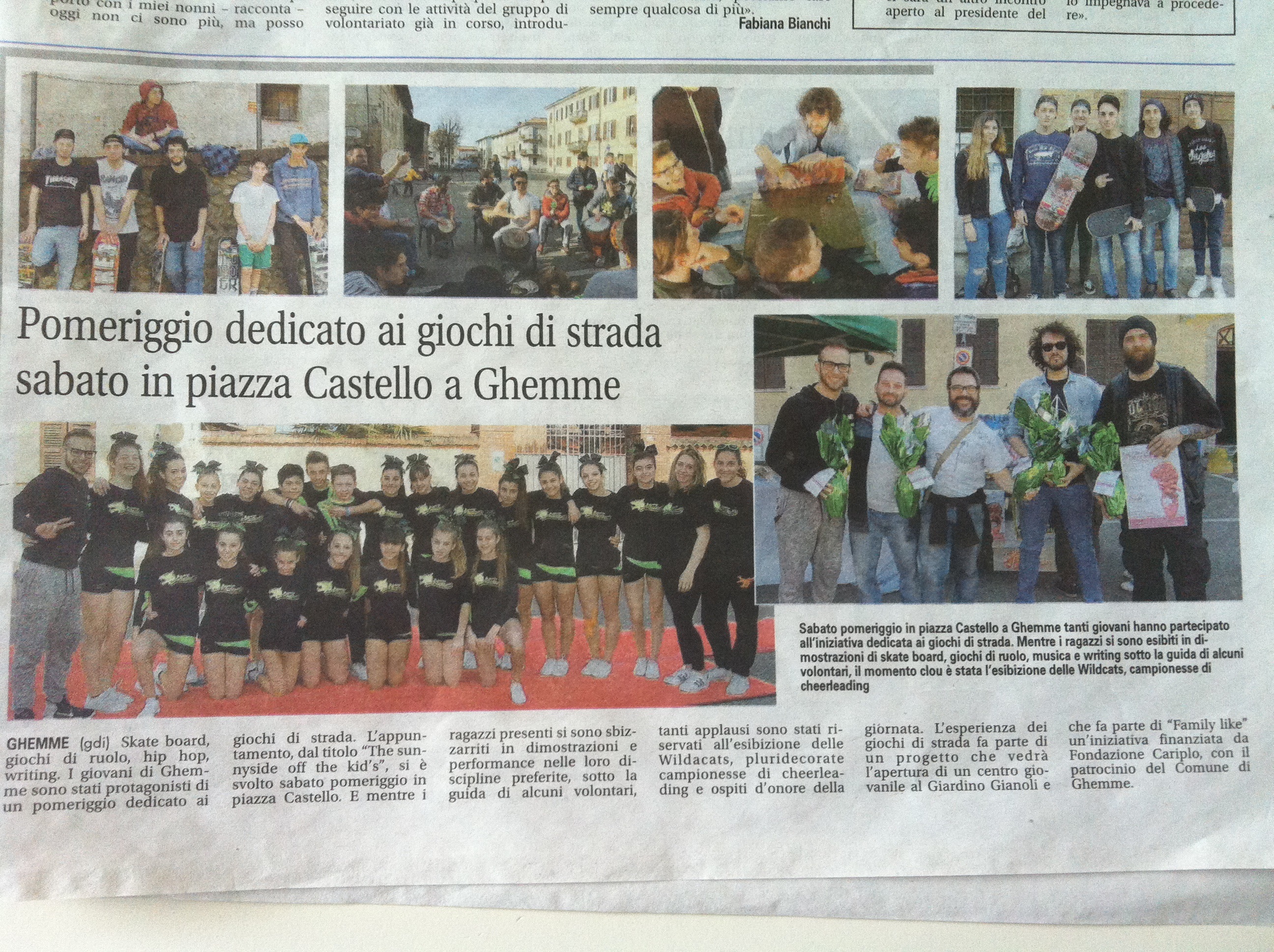 I giovani di Ghemme sono stati protagonisti di un pomeriggio dedicato totalmente a loro con giochi di strada e di ruolo (sotto la guida di alcuni volontari e dell'educatore Sebastiano Guida del CISS) oltre ad esibizioni di basket, skate, hip hop e writing. Tanti applausi per l'esibizione delle Wildcats di Gattinara, campionesse di cheerleading.