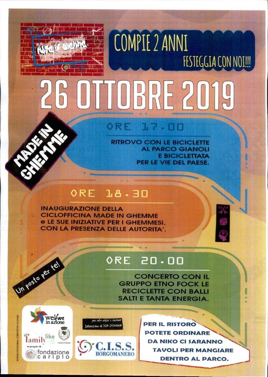 Siamo ad invitarvi alla "Festa di Compleanno" di Made in Ghemme che si terrà sabato 26 ottobre 2019 presso il Parco di Villa Gianoli.