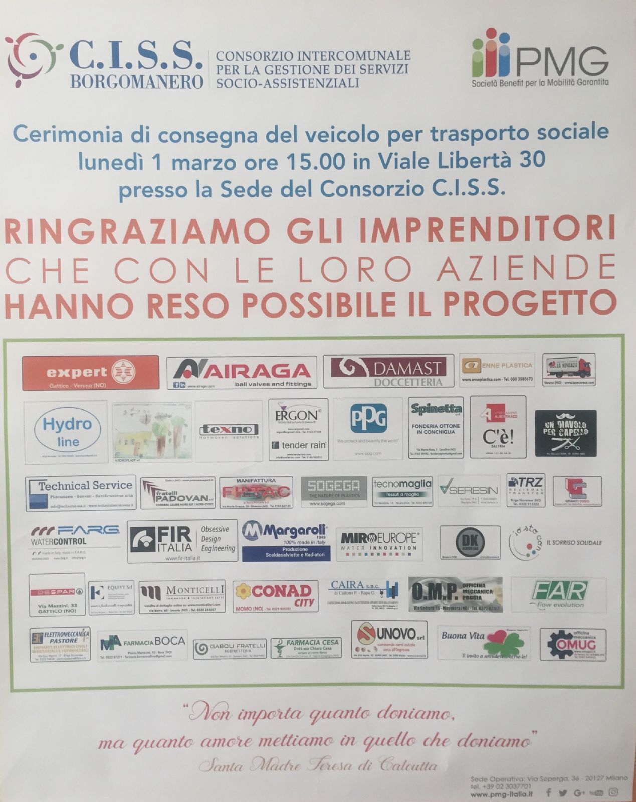 Ringraziamo le 47 aziende del territorio che con il loro prezioso contributo hanno reso possibile attuare il Progetto di Mobilità Garantita (PMG).